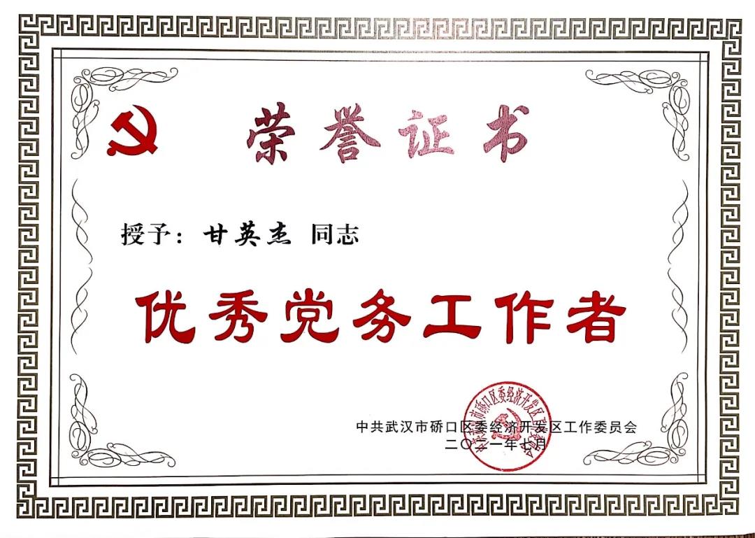 下午15時(shí),大會(huì)正式開(kāi)始,全體起立,共唱國(guó)歌。紀(jì)工委書(shū)記章國(guó)偉宣讀《硚口經(jīng)濟(jì)開(kāi)發(fā)區(qū)黨工委關(guān)于表彰優(yōu)秀共產(chǎn)黨員、優(yōu)秀黨務(wù)工作者和先進(jìn)基層黨組織的決定》。20余名共產(chǎn)黨員、10余名黨務(wù)工作者、近10個(gè)基層黨組織,分別被授予硚口區(qū)委經(jīng)濟(jì)開(kāi)發(fā)區(qū)“優(yōu)秀共產(chǎn)黨員”、“優(yōu)秀黨務(wù)工作者”、“先進(jìn)基層黨組織”榮譽(yù)稱號(hào)。開(kāi)發(fā)區(qū)黨工委班子成員及其他領(lǐng)導(dǎo)為獲獎(jiǎng)?wù)叽眍C發(fā)榮譽(yù)證書(shū)和獎(jiǎng)牌,會(huì)場(chǎng)響起熱烈掌聲。我司支部張濤同志、趙俊同志分別榮獲“優(yōu)秀共產(chǎn)黨員”稱號(hào);甘英杰同志榮獲“優(yōu)秀黨務(wù)工作者”稱號(hào)。