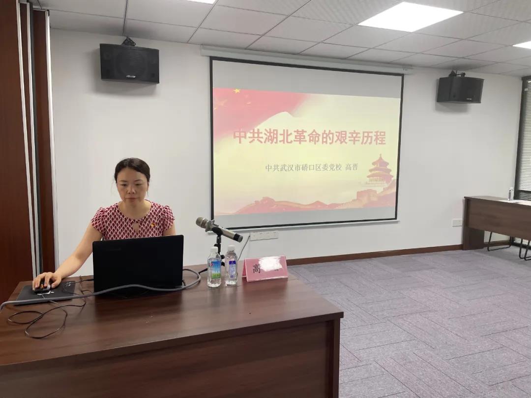 最后由區(qū)委黨校講師高晉作專題輔導(dǎo)報(bào)告。高老師為我們講授了《中共湖北革命的艱辛歷程》,以“我們黨的一百年,是不忘初心、牢記使命的一百年,是篳路藍(lán)縷、奠基立業(yè)的一百年,是創(chuàng)造輝煌、開(kāi)辟未來(lái)的一百年”為開(kāi)端,內(nèi)容生動(dòng)詳盡,為我們?cè)佻F(xiàn)了一段輝煌的百年革命歷史。